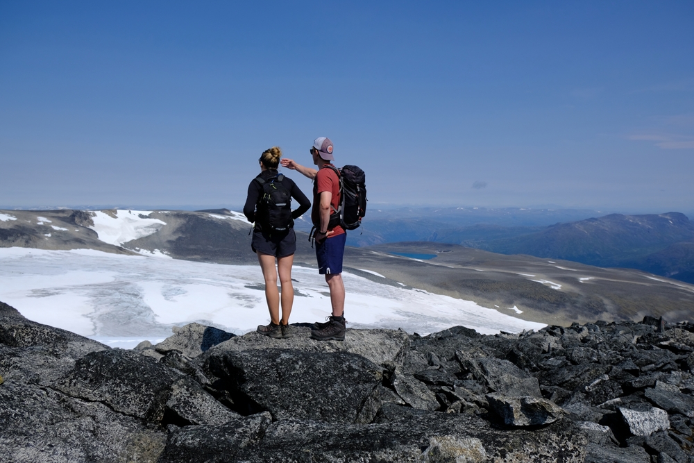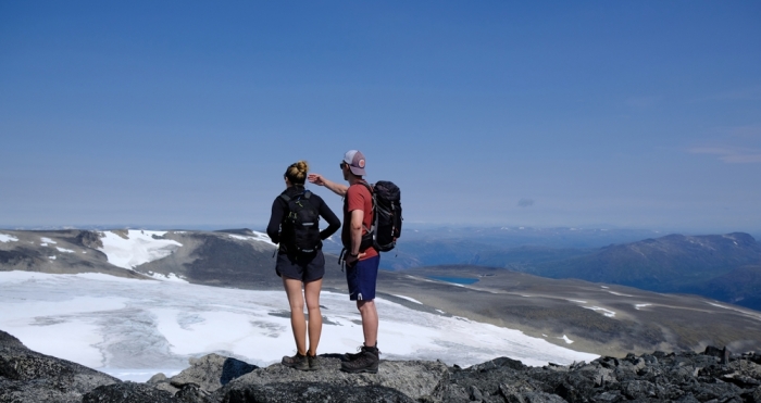 Zdobywamy najwyższy szczyt Norwegii Galdhopiggen (2469 m.n.p.m.). Czas przejścia ok. 6–7 godz., wymagana dobra kondycja fizyczna. Chętni mogą zamienić ten trekking na jedną z krótszych tras.