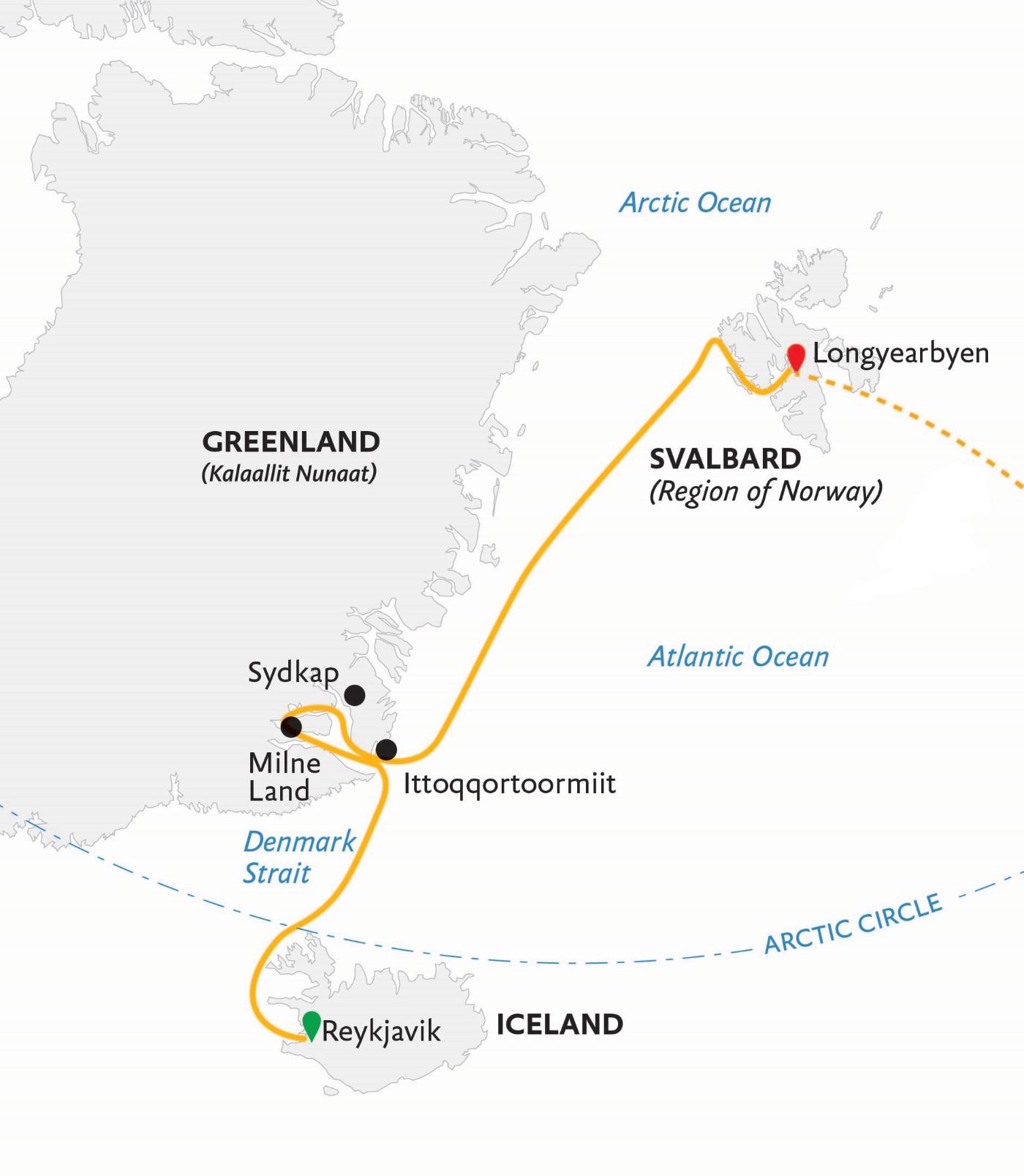 Wyprawa nazywana jedną z 50 wycieczek w życiu według miesięcznika National Geographic Traveler. Podczas tej niezapomnianej podróży rozpoczynającej się za kołem podbiegunowym* na Spitsbergenie, „stolicy dzikiej przyrody Arktyki”, wyruszysz do spektakularnego, odległego krajobrazu Wschodniej Grenlandii i południowej Islandii. Poznaj niesamowitą Arktykę na pokładzie statku Ocean Adventurer, zanurz się w pięknie i kruchości tego cudownego regionu i wróć z wyjątkowymi wspomnieniami, które przetrwają całe życie...