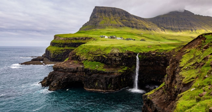Powrót na główną wyspę i przejazd do malowniczej wioski Gasadalur. Stąd ruszymy na krótki trekking do przepięknie położonego wodospadu Mulafossur, który wpada wprost do oceanu.
