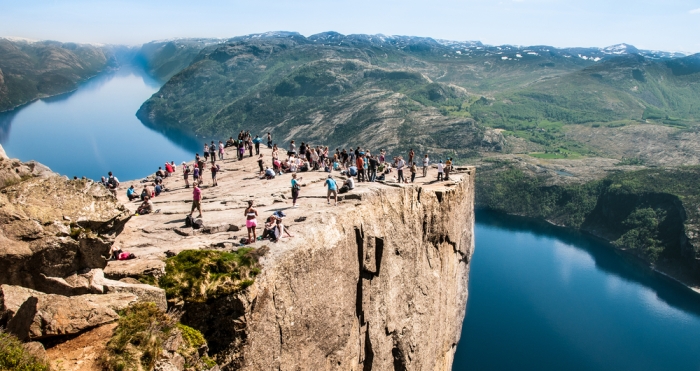 Piesza wycieczka na punkt widokowy na Lysefjord. Czas przejścia tam i z powrotem 3-4 godz. Zdobędziemy słynną ambonę Preikestolen. Jest to charakterystyczna naga granitowa skała wznosząca się pionowo 600 metrów nad poziom wody. Z malowniczo położonej skały rozciąga się piękny widok na Lysefjorden.